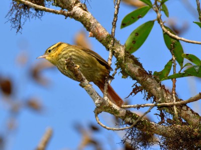 Observação feita em campo, tem cerca de 10 cm, faixa supra-ciliar que se junta a coleira esbranquiçada, peito esbranquiçado rajado de marrom, percorre desde o estrato inferior até o superior revirando folhas e galhos podres à procura de insetos e larvas.