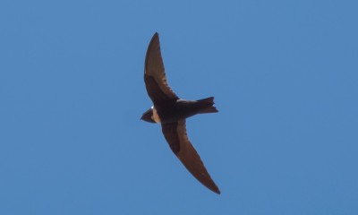 Mede cerca de 21 centimetros. Os taperuçus têm pés muito reduzidos que os impedem de pousar em fios de eletrificação ou galhos, como o fazem as andorinhas. Esta é a maior espécie da família e sua velocidade de vôo pode alcançar 100 km/hora.